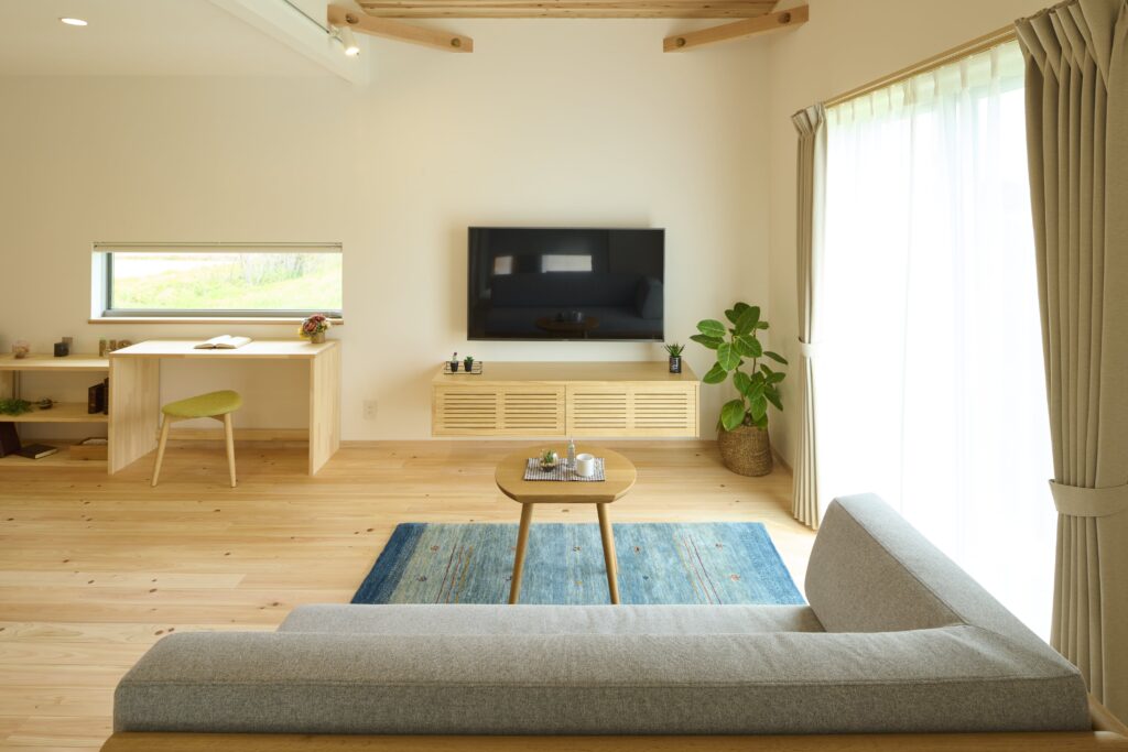 ホテルのようなリビングでは、くつろぎやすさが重要です。